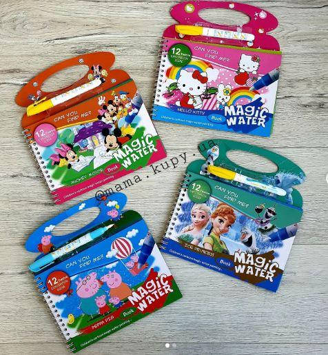 Многократная водная раскраска – это один из лучших подарков для вашего малыша. Он будет с большим удовольствием раскрашивать эти рисунки. Раскраска называется очаровательной, и она не зря получила такое название. Цвет рисунка передается не с помощью карандашей и фломастеров, а с помощью воды, заливаем в специальный маркер. Когда вы проведете таким маркером на рисунке, на нем начнут проявляться цветные изображения. Спустя небольшой промежуток времени изображения высыхают и исчезают, и снова можно раскрашивать!
