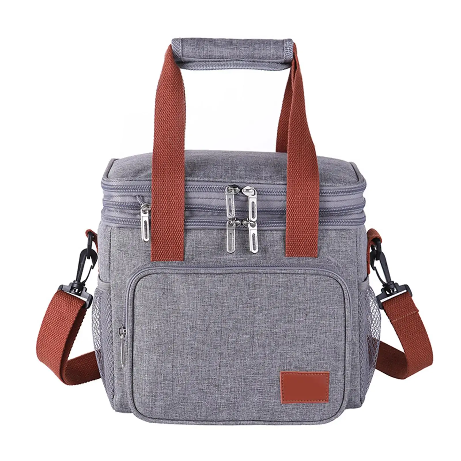 Многоразовая двухслойная изолированная сумка для ланча с передним карманом для офиса и пикника