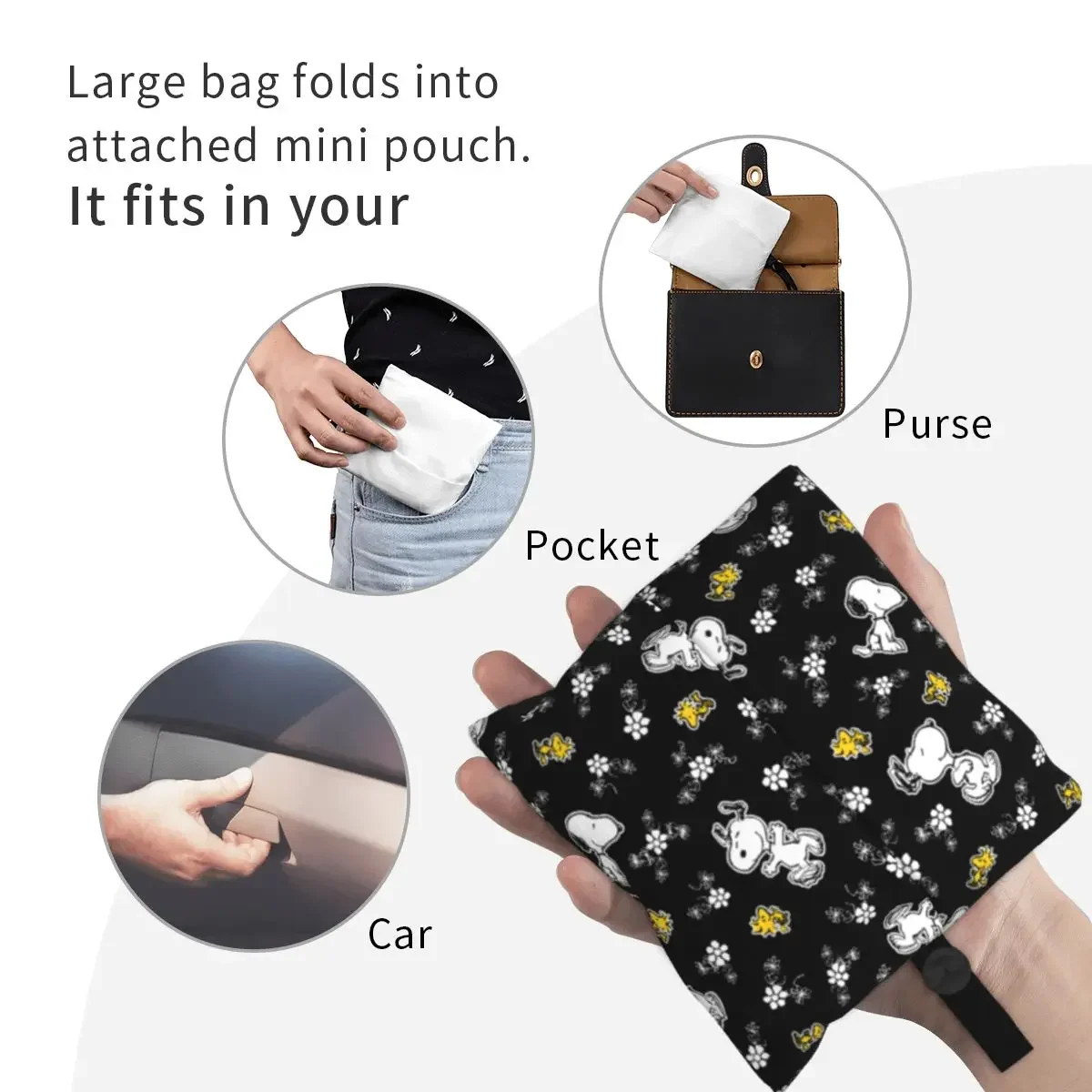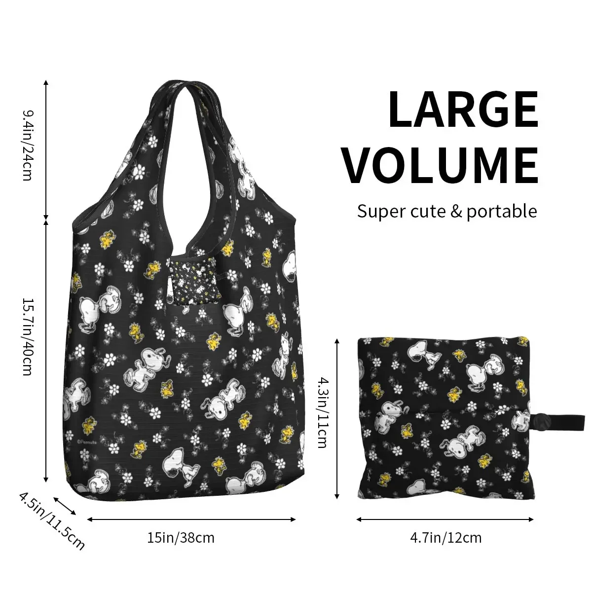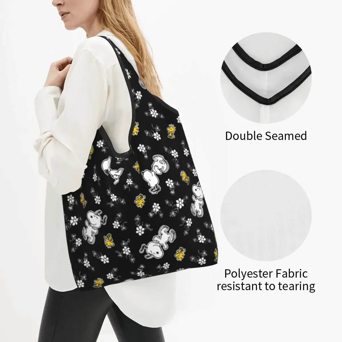 Многоразовая сумка для покупок Snoopy Woodstock Fun Flowers для продуктов, складные сумки для продуктов, моющиеся большие сумки-тоут
