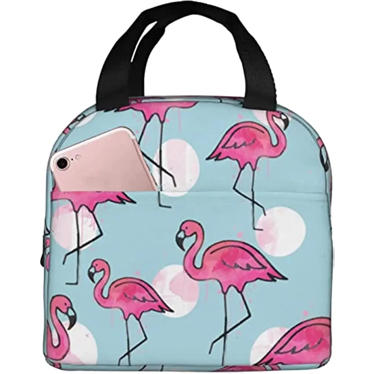 Многоразовая сумка-тоут для ланча, изолированная сумка для ланча с розовым фламинго, акварельным рисунком, прочная охлаждающая коробка для ланча