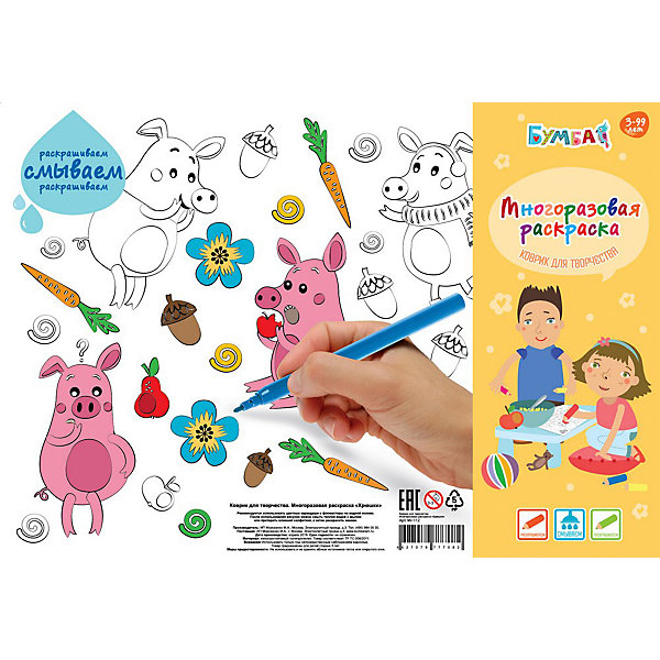 Многоразовый коврик-раскраска Бумба "Хрюшки", 32,5х22,5 см, Разноцветный