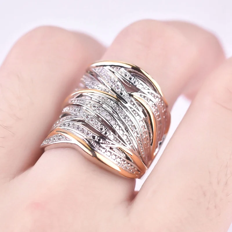 Многослойное роскошное кольцо из циркония, Женское кольцо с пересекающимися кристаллами и круглым камнем, обручальное Винтажное кольцо дл...