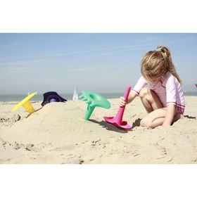 Triplet — это уникальный инструмент 4 в 1 ТМ Quut для весёлых игр на пляже или в песочнице. Ребёнок с его помощью выроет яму, сделает основание для замка, очистит территорию от камей и ракушек, а также сделает узор водой. Игрушка заменит сразу лопатку, грабли, сито и воронку. Рекомендовано для детей от 1,5 лет.