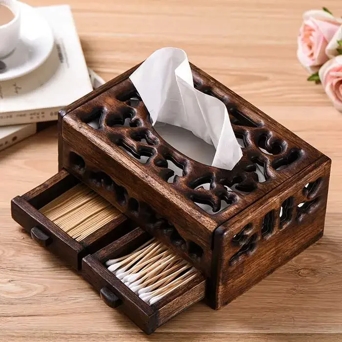 Многофункциональная коробка для салфеток из цельного дерева в стиле ретро, журнальный столик для гостиной, настольный поднос, бытовой полый ящик для хранения салфеток