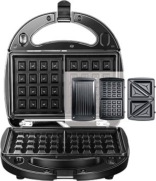 многофункциональная сэндвичница, 700 Вт, поверхность: гриль-пластина/форма для 2 ломтиков хлеба/вафельница, съемные плитки, серебристый/черный