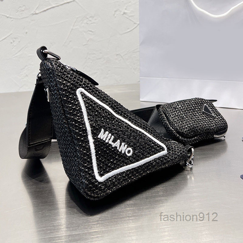 Evening Bags Summer Straw Triangle Bag Weave Crossbody Bags Women Mini Handbag Candy Purse Flap Wallet Removable Wide Shoulder Strap Fashio
