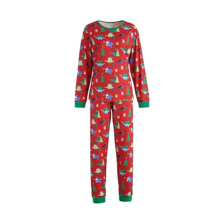 Christmas Family Matching Pajamas Set Christmas Theme Print Long Sleeve Tops Pants Sleepwear