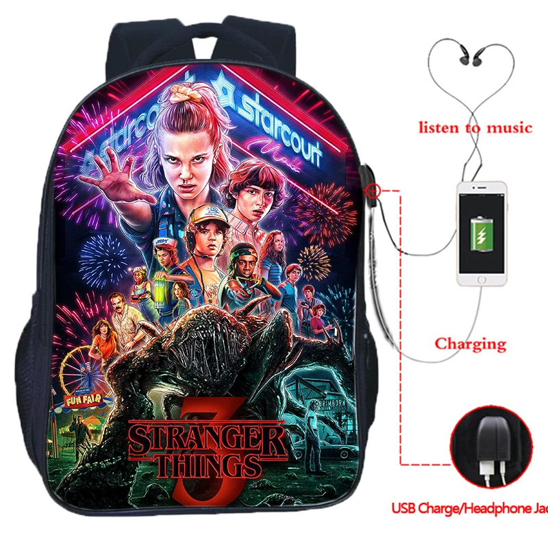 Многофункциональные школьные ранцы с USB-зарядкой и принтом «очень странные дела»