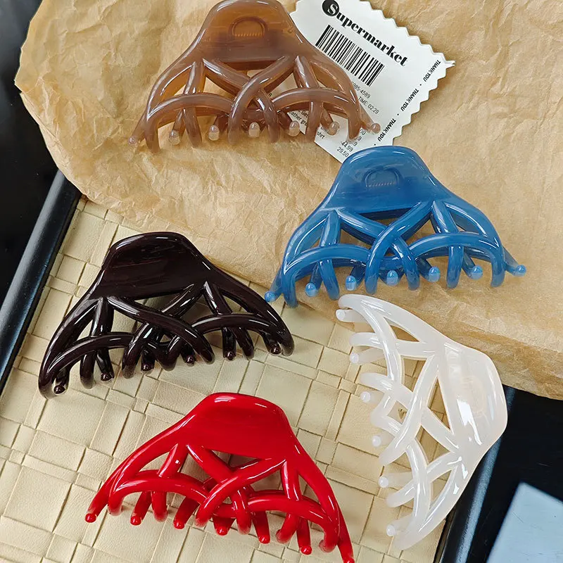 DS NEW Retro Triangular Hollow Hair Claw Thickened Acrylic Claw Clips Solid Color Hair Clips for Women Girls Hair Accessories