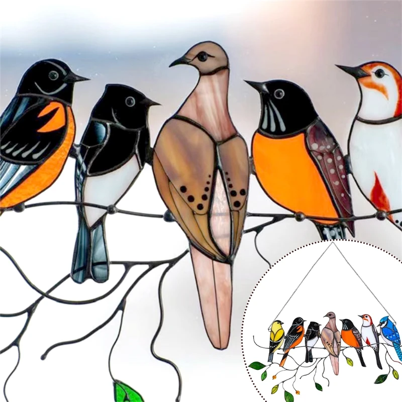 Многоцветные витражные птицы на проволоке, акриловая витражная панель для окон, настенные украшения для дома