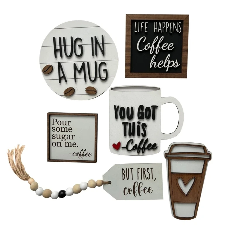 Многоярусный поднос для фермерского дома, набор из 6 значков для кофейных баров, мини кофейная чашка, деревянные бусины, гирлянды для кухни, полки для кофе