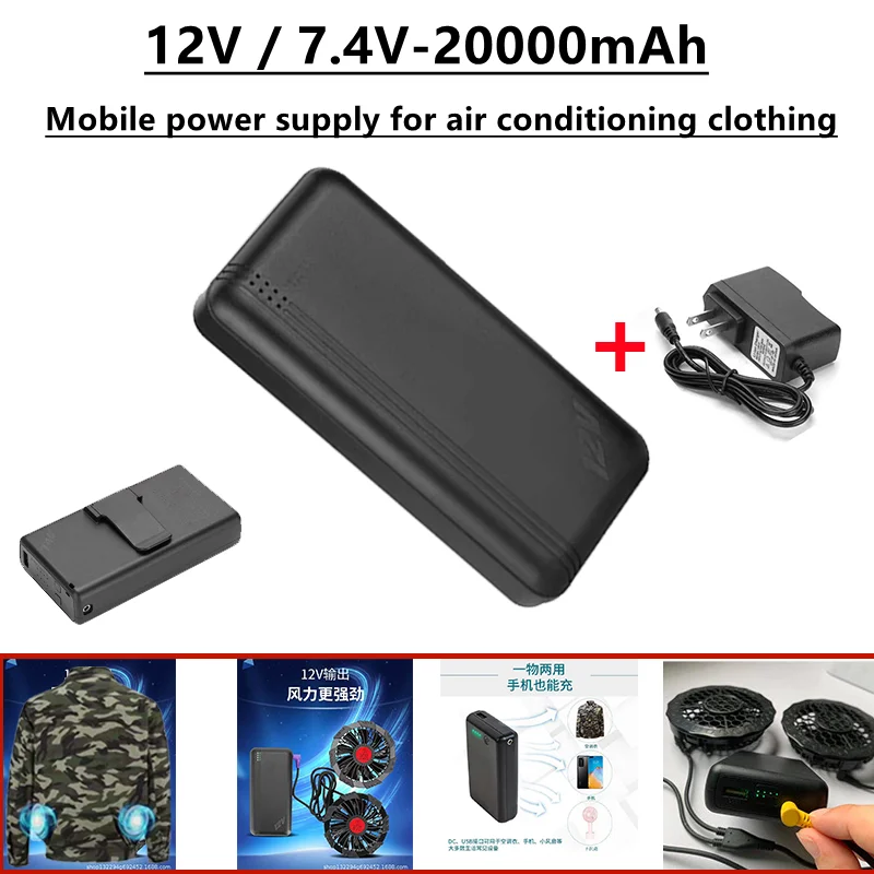 Мобильный источник питания 12 В/7,4 В для одежды с кондиционером, 20000 мАч, используется для одежды с кондиционером, стандартной зарядкой и т. Д.