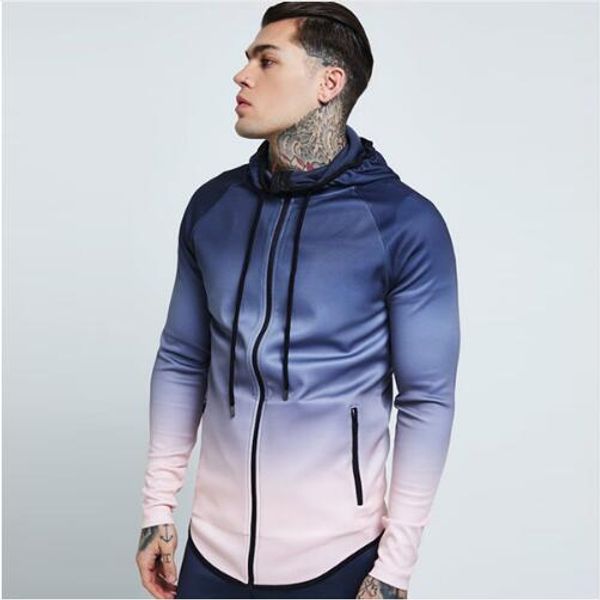 Мода Работает Куртка Мужчины Молнии Градиент Фитнес Пальто С Капюшоном Бег Пешие