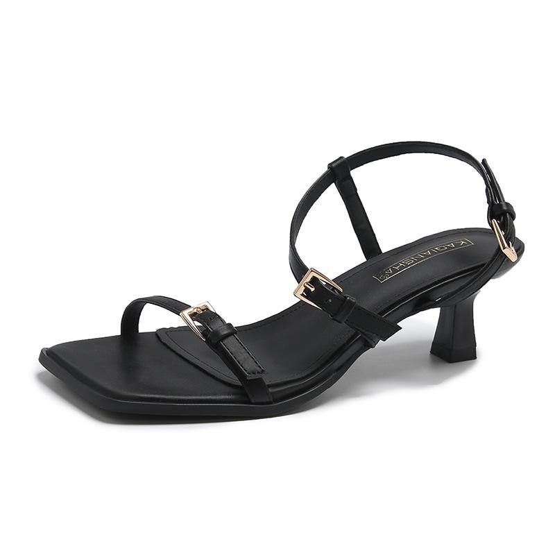 Мода Мода Узкий Ремень Пряжка Женские Сандалии Квадратный Носок Тонкий Каблук Шлепанцы Мода Комфорт Открытый Носок Летние Женские Сандалии 39 чёрный