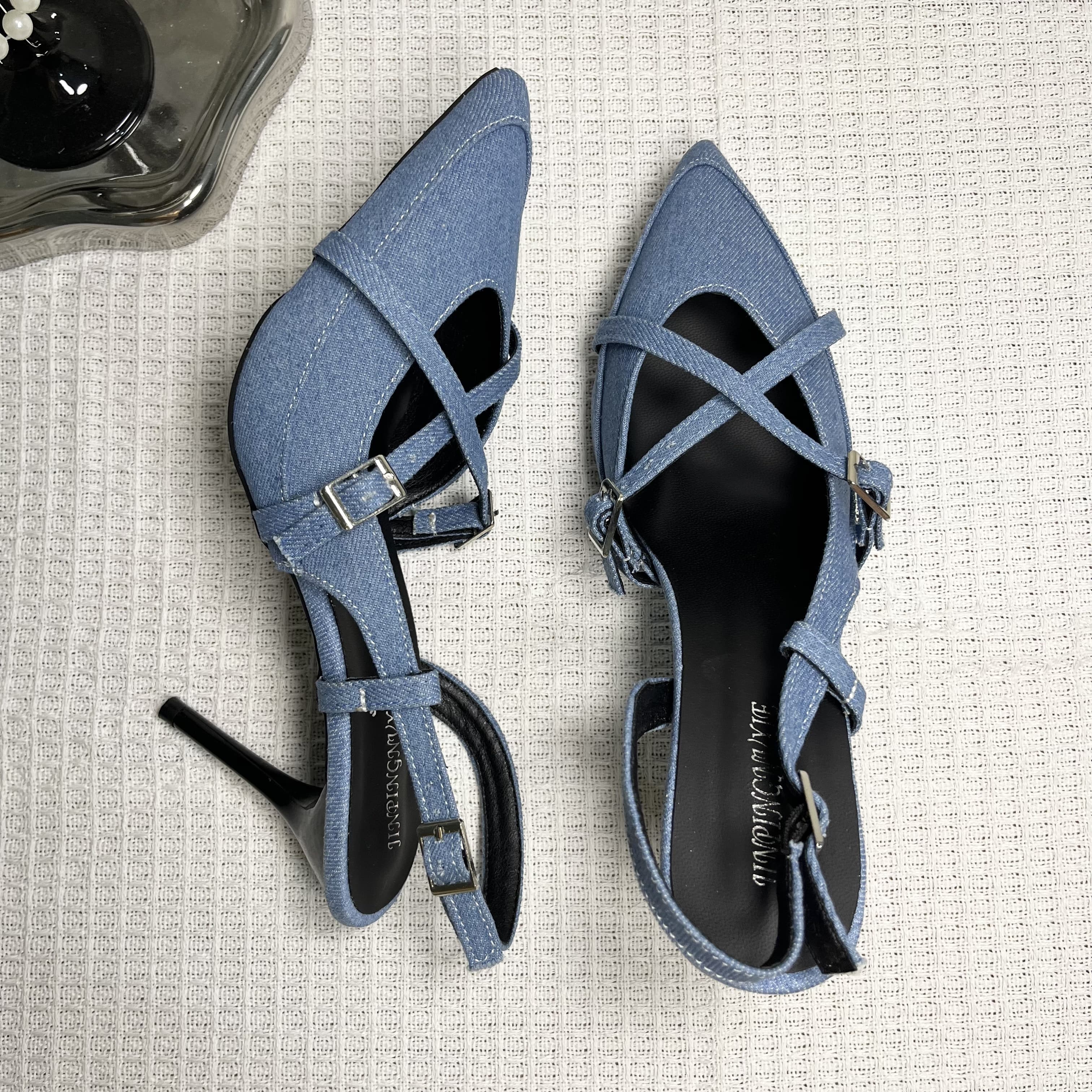 Мода Уличный Стиль Сексуальные Туфли-Лодочки с Ремешком и Пряжкой Женские Элегантные с Острым Носком на Тонком Высоком Каблуке Банкетные Вечерние Слингбэки Босоножки 39