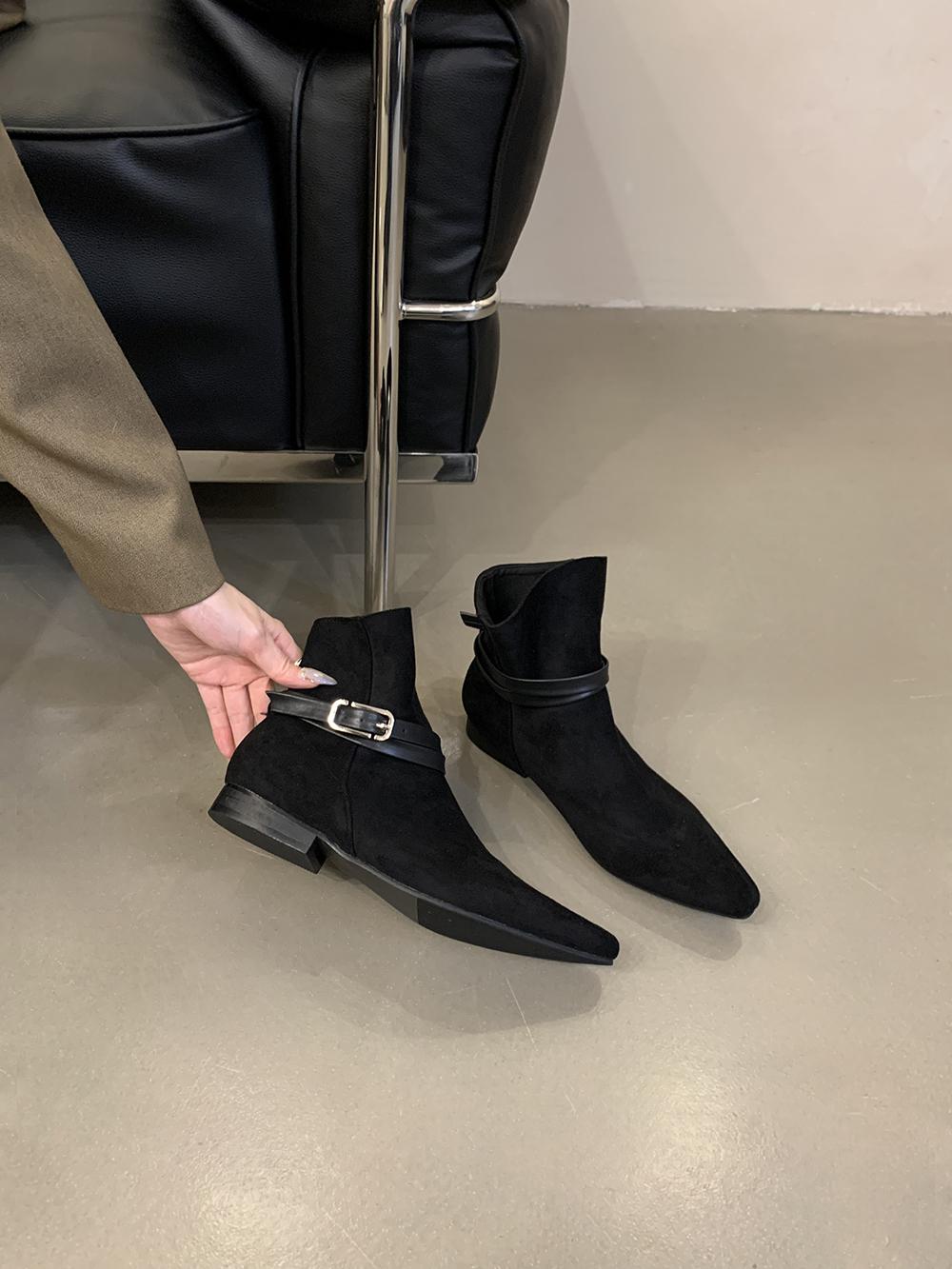 Мода Черные Коричневые Женские Ботильоны Острый Носок Замшевые Туфли Туфли На Танкетке Средний Каблук Вечерние Туфли-лодочки Женские Размеры 35-39 Мода 225 чёрный