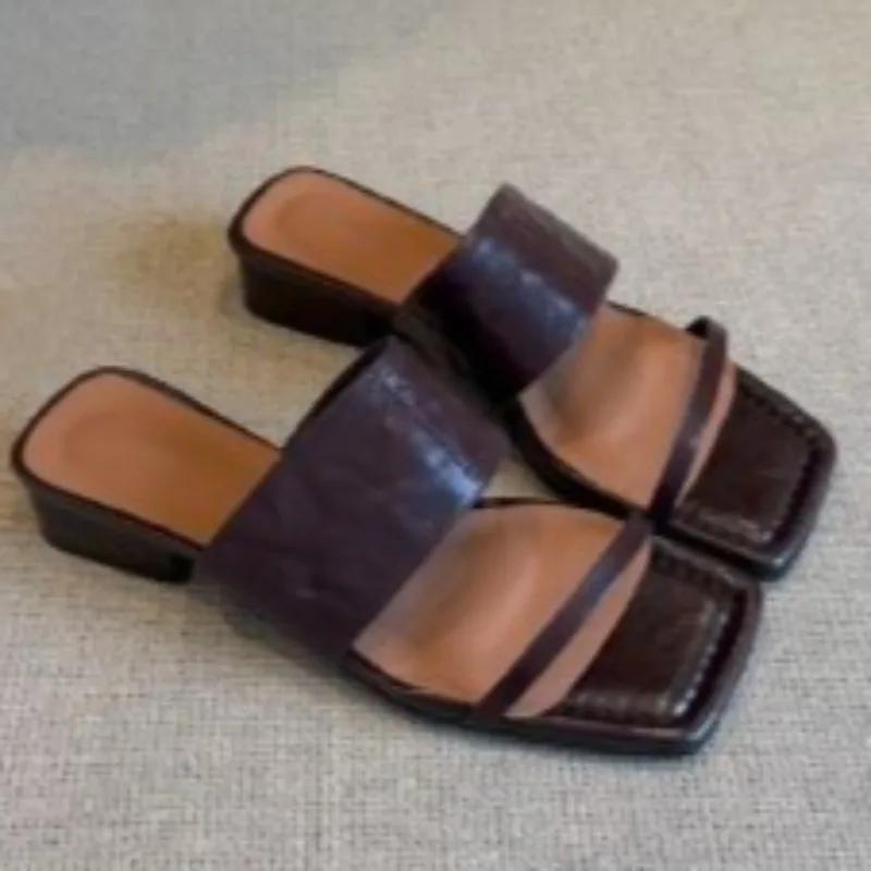 Мода Мода Шлепанцы с открытым носком Женские Винтажные Уличные Квадратный носок Открытый носок Нескользящий Блочный каблук Каблук-рюмочка Тапочки 40 темно-коричневого