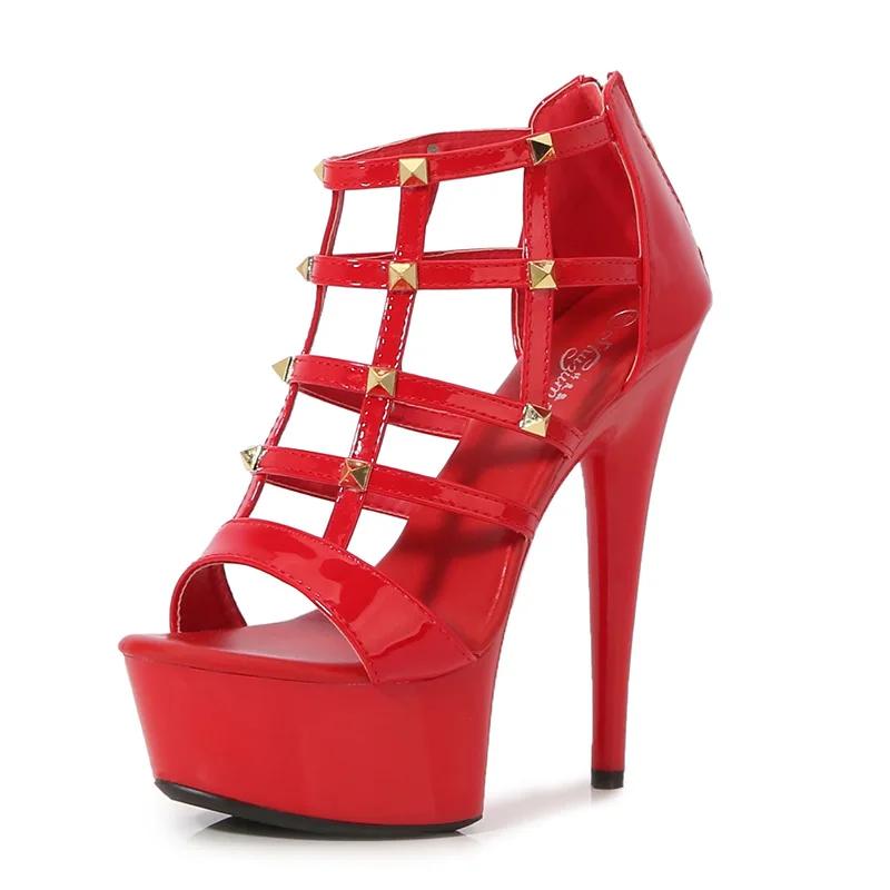 Мода 14,5 см Экстремально Высокие Каблуки Платформы Женские Сандалии Ремешок на Щиколотке Сексуальные Танцы на Шесте Стриптиз Клуб Вечеринка Показ Моделей Унисекс Обувь 41 красный
