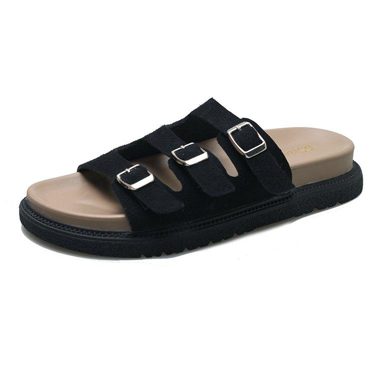 Мода 2024 Весна Новые кожаные туфли женские сандалии на плоской подошве с мелким носком в стиле пэчворк женские шлепанцы сандалии летние тапочки 40 36 чёрный