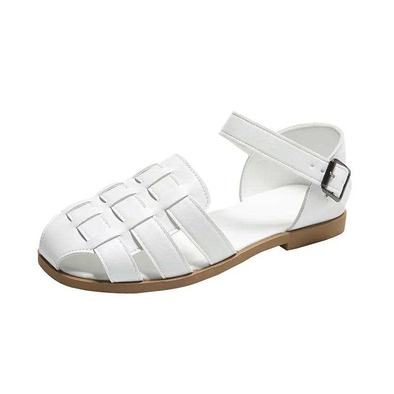 Мода 2024 Высококачественная женская обувь Закрытый носок Женские сандалии Летние повседневные сандалии Женские сандалии с пряжкой и ремешком на каблуке Римская женская обувь 39 белый