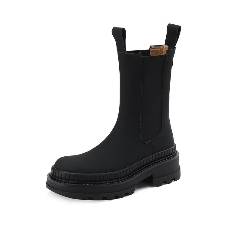 Мода 2024 Новые Зимние Женские Сапоги Коровья Кожа Круглый Носок Ботинки на Платформе Однотонные До середины Икры Современные Ботинки для Женщин Слипоны Короткие Ботинки Женские 39