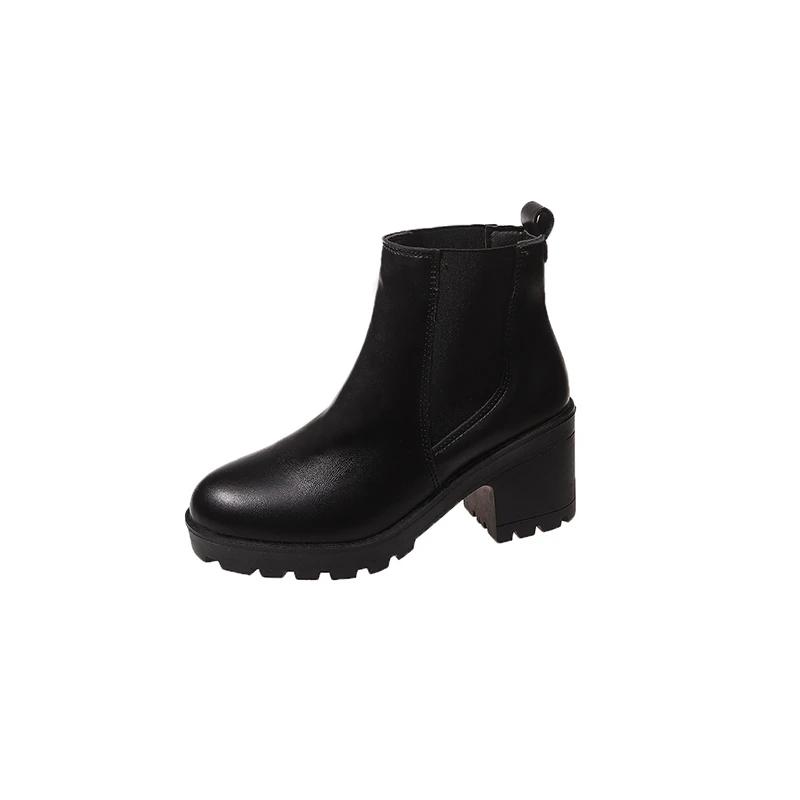 Мода 2024 года Женская обувь для активного отдыха Современные женские ботинки Лаконичные ботильоны Женские туфли с круглым носком и квадратным каблуком Большие размеры Женские 43 чёрный