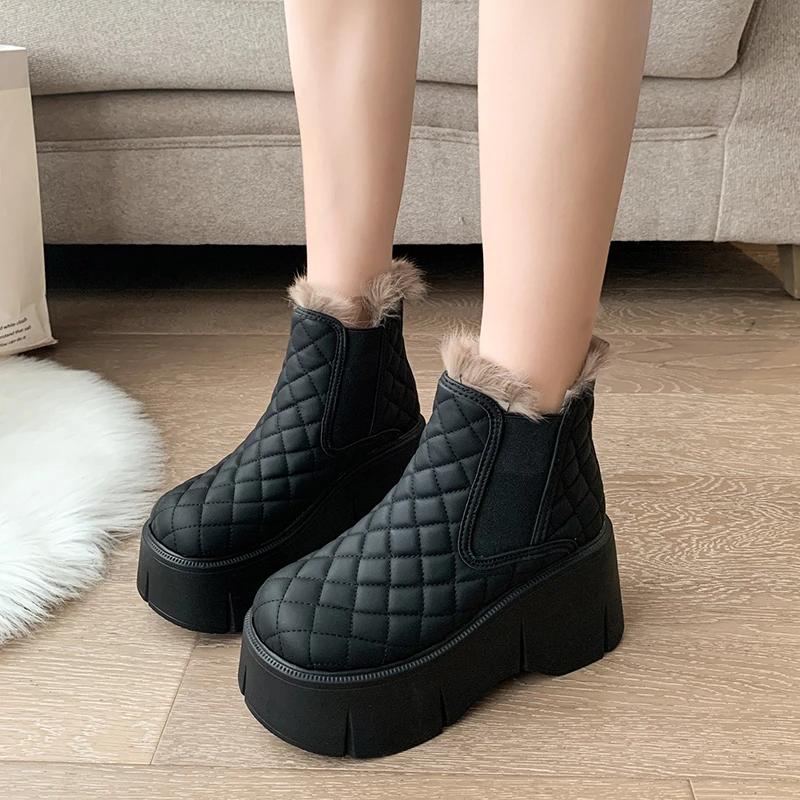 Мода 2024 года, брендовые женские туфли, женские ботильоны, модные круглые носки, современные ботинки, женские зимние короткие туфли на платформе из плюша для женщин 39 чёрный