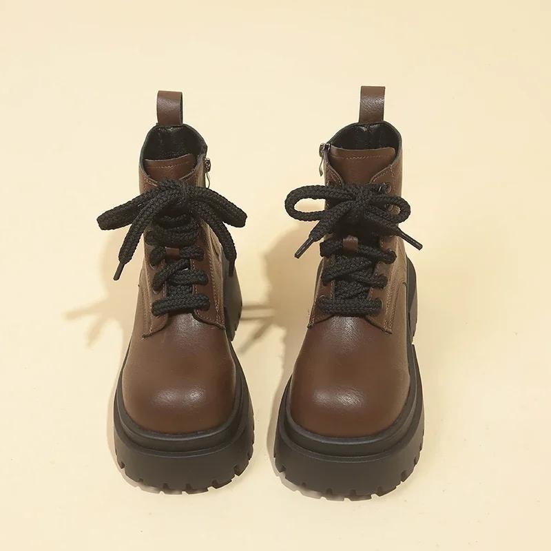 Мода 2024 года, горячая распродажа женской обуви, женские ботинки с боковой молнией, модные современные ботинки со шнуровкой спереди, женские зимние ботинки до середины икры с круглым носком 40 коричневый