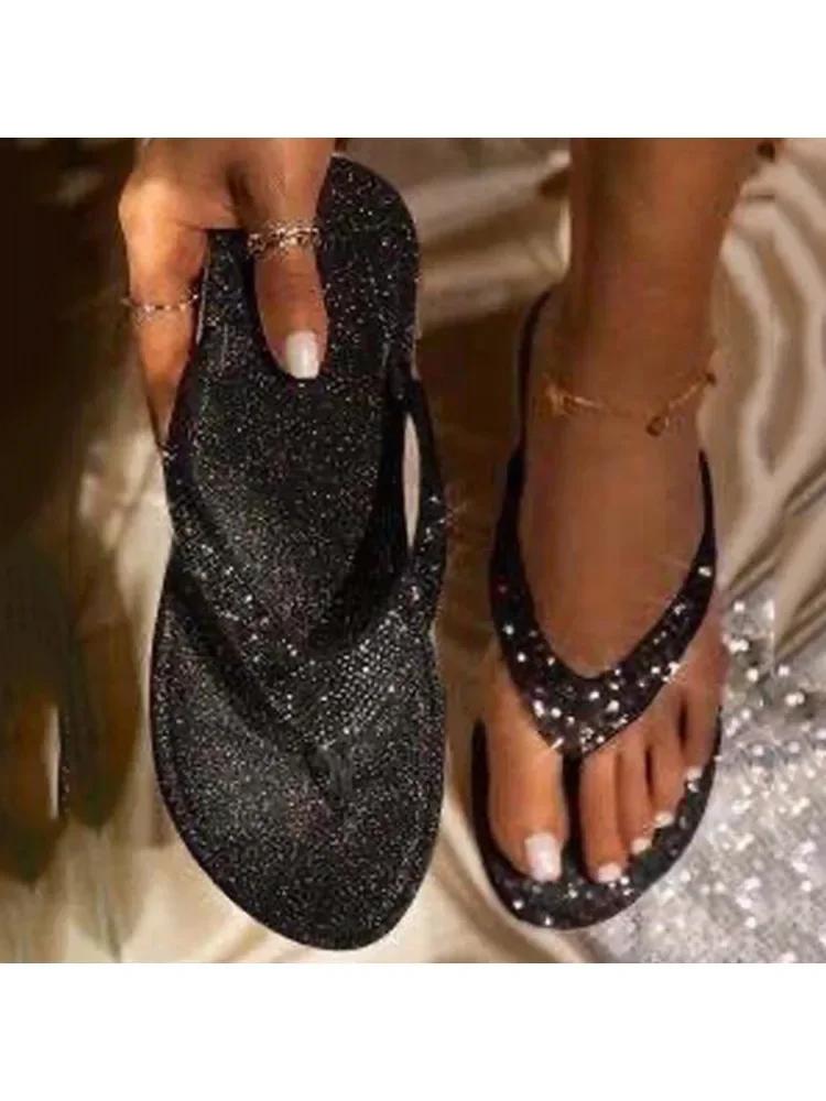 Мода 2024 года, женские шлепанцы, шлепанцы, блестящие женские туфли со стразами, повседневные летние туфли на плоской подошве, женские, с кристаллами и блестками, размер плюс 43 40 чёрный