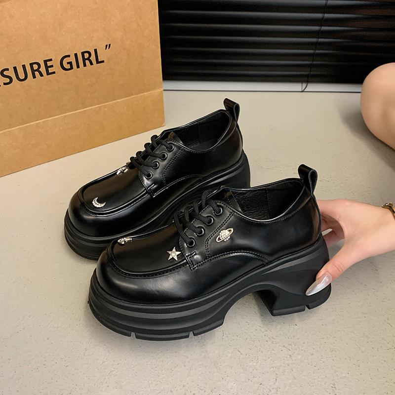 Мода 2024 года, новая осенняя обувь на толстой подошве, простая однотонная кружевная металлическая звезда и луна, универсальная модная женская обувь 40 матовый черный