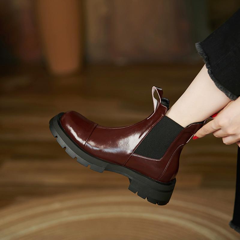 Мода 2025 Новые Осенние Женские Ботинки Круглый Носок Толстый Каблук Женская Обувь Мотоциклетные Ботинки Платформа Черные Ботильоны Современная Обувь на Платформе 34