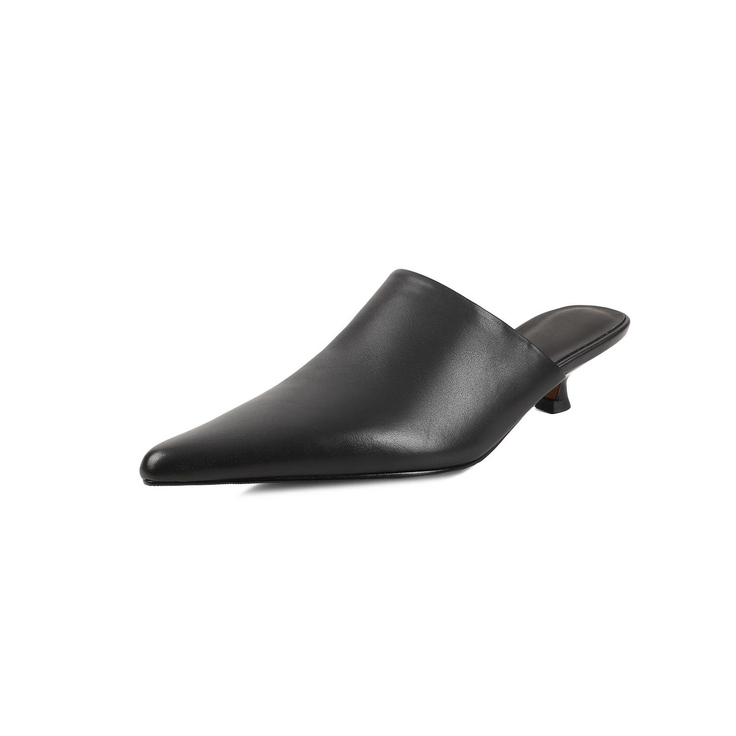 Мода 2025 Новые тапочки Мюли Натуральная кожа Женская обувь Сексуальный острый носок Летняя обувь Женские туфли с узором змеи Черно-белые туфли для вечеринки 34 чёрный