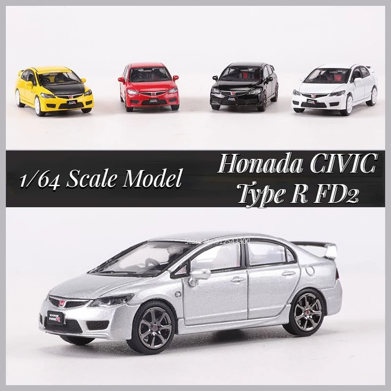 Модель автомобиля DCT 1/64 Honada CIVIC Тип R FD2 из сплава, миниатюрная модель литая машинки, коллекционная игрушка для мальчиков, лучший подарок
