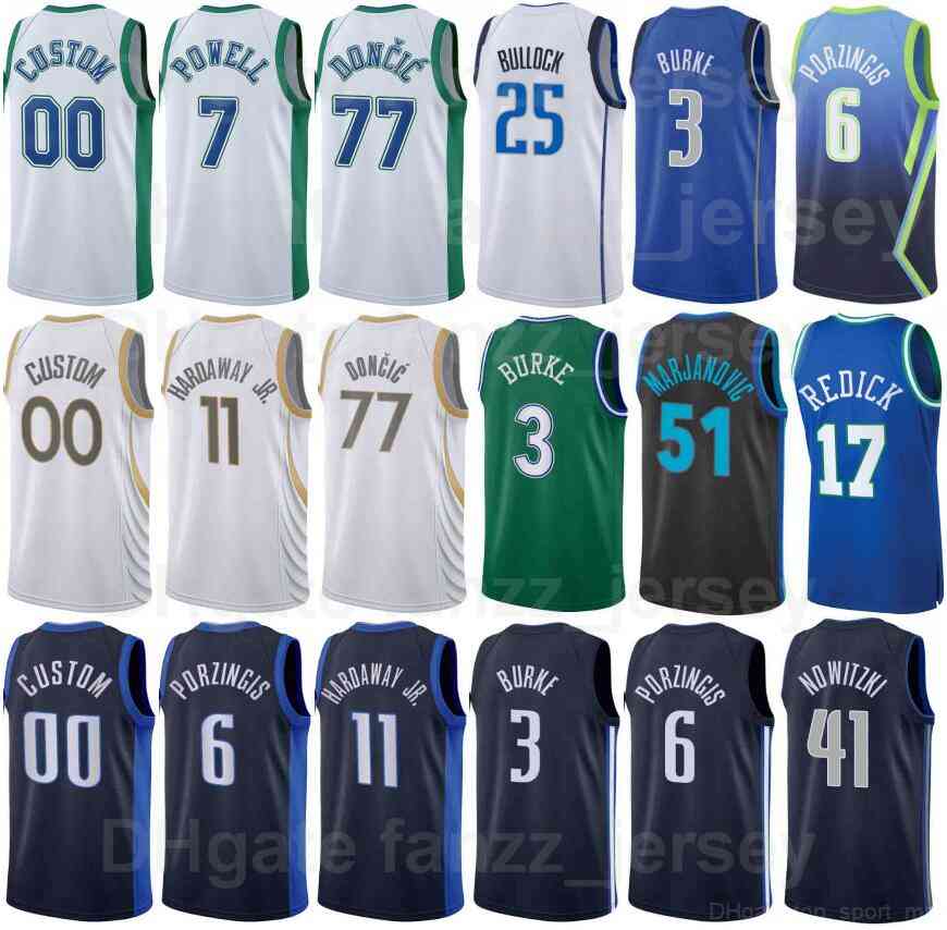 Print Basketball Luka Doncic Jerseys 77 Tim Hardaway Jr 11 Kristaps Porzingis 6 Trey Burke 3 Jalen Brunson 13 Dirk Nowitzki 41 Navy Blue White Black Men Women Kids, Nevy blue