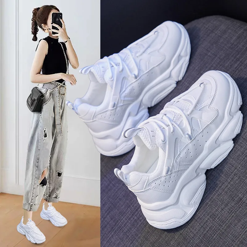 Модная Корейская версия женской обуви для пожилых женщин Новинка весна-осень 2022 универсальная спортивная обувь на толстой подошве увеличе...