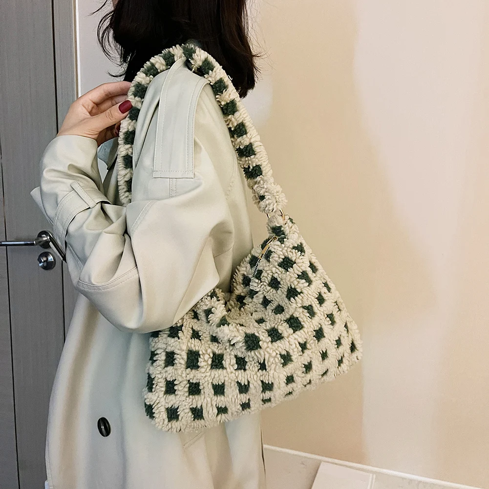 Модная Сумка-тоут в стиле ретро, теплая осенне-зимняя сумка с верхними ручками, пушистая женская мягкая плюшевая маленькая сумка на молнии д...