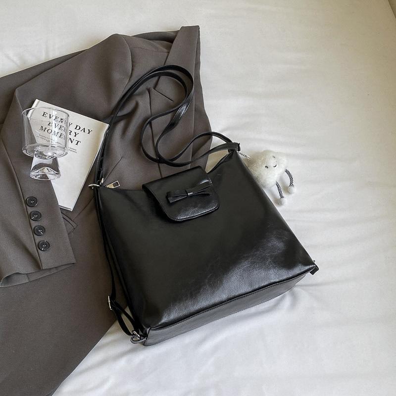 Модная большая женская сумка 2024 года, летняя новая большая сумка-тоут, студенческая сумка для занятий, простой рюкзак Without pendant чёрный