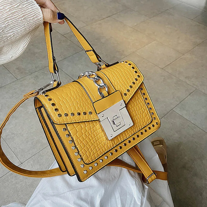 Модная брендовая дизайнерская сумка на плечо, модные качественные сумки через плечо с заклепками, однотонная кожаная сумка, женские новые м...