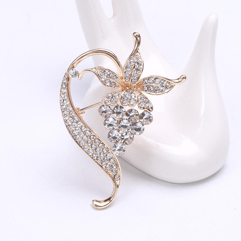 Модная брошь в виде виноградной лозы со стразами, простая брошь в виде аксессуаров для одежды золотой