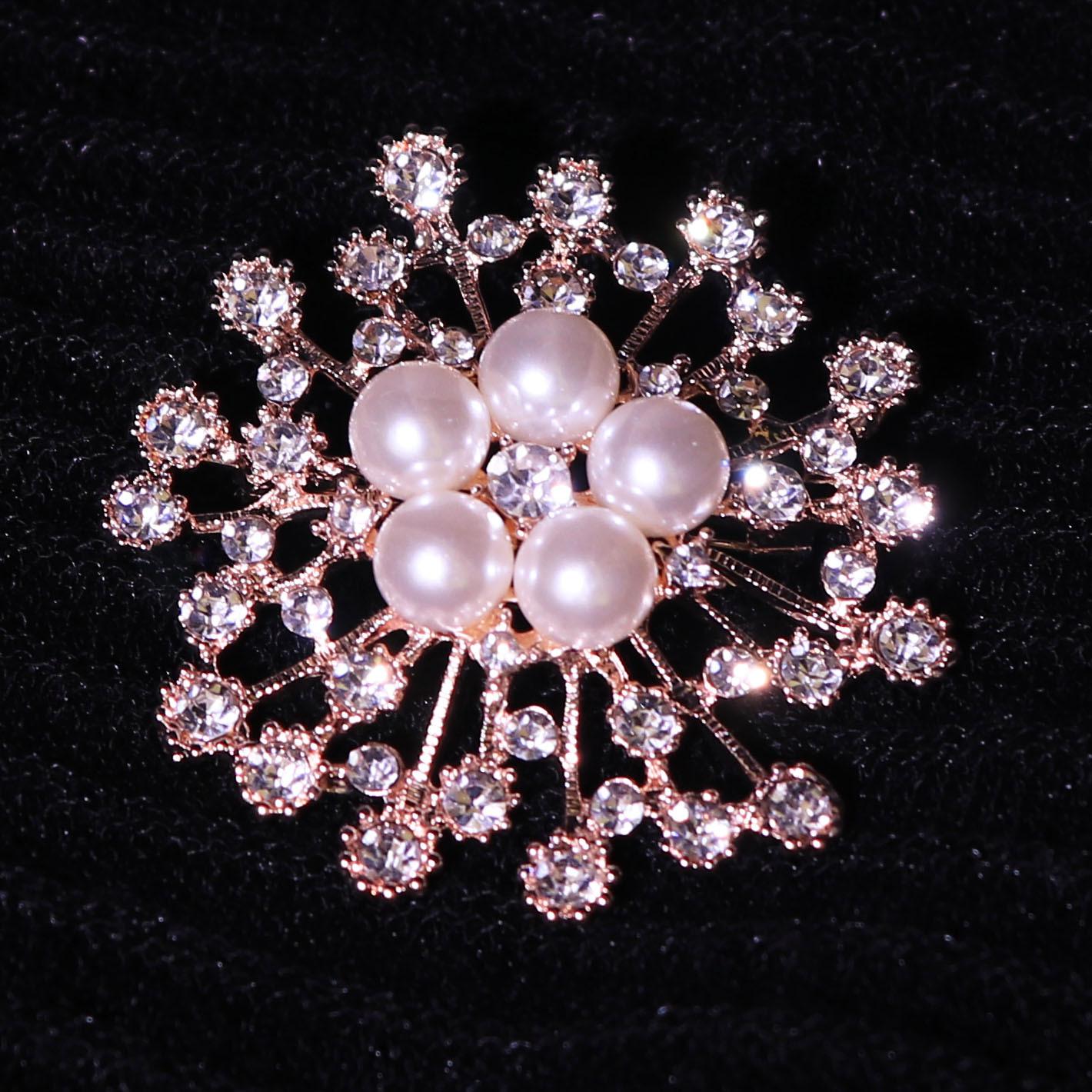 Модная брошь в виде снежинки с бриллиантами, жемчужная брошь из сплава, аксессуары, универсальная пряжка для шелкового шарфа