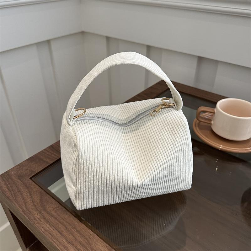 Модная вельветовая сумка-ведро большой вместимости, весна 2024, новая повседневная простая популярная сумка-мессенджер через плечо белый
