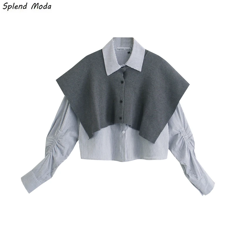 Модная винтажная Осенняя Вязаная Шаль Splend 2021, полосатая поддельная рубашка из двух частей, свободная шикарная женская мода