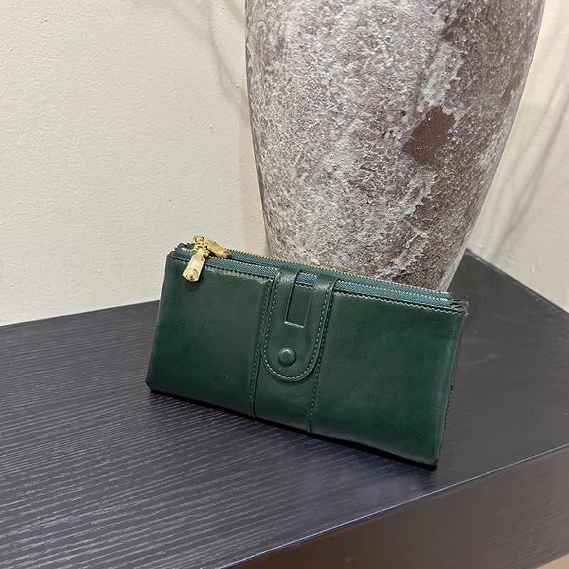 Модная городская простая маслянистая кожаная однотонная двойная молния с несколькими картами, многофункциональная, с несколькими картами, однотонная длинная женская сумка