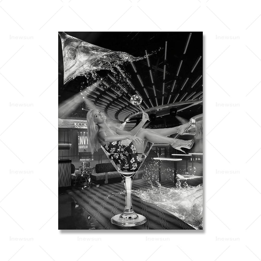 Модная девушка принт обнаженная сексуальная девушка пьет черно-белый постер диско-шар настенное искусство холст живопись стильные забавные картинки 21x30cm No Framed