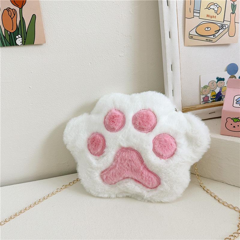 Модная детская плюшевая сумка, новая креативная, милая, с косой петлей, сумка, простая, для девочек, сумка через плечо с цепочкой белый