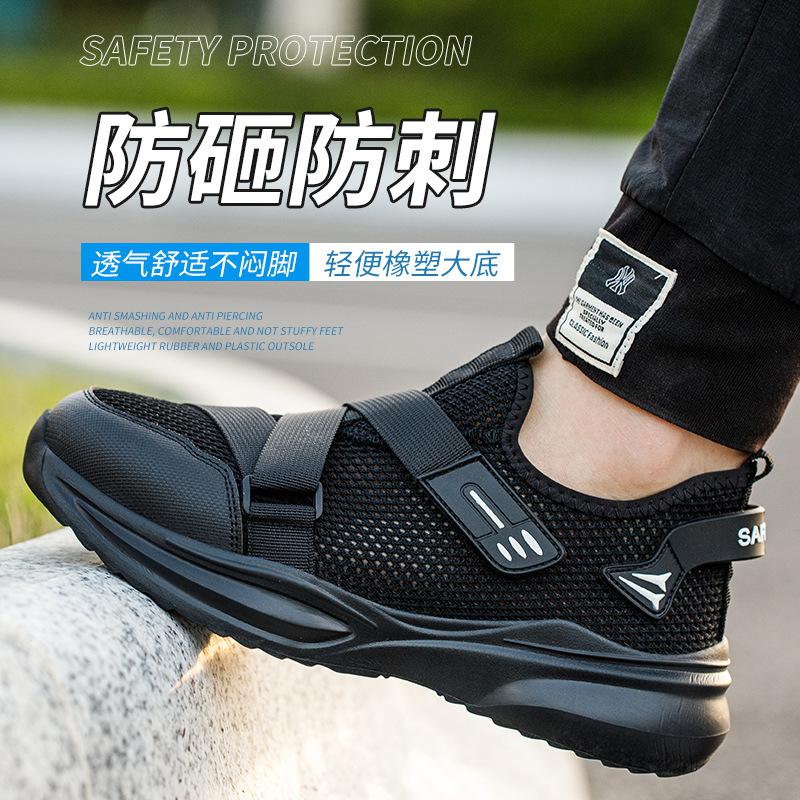 Модная дышащая летняя защитная обувь кроссовки с пластиковым подноском мужские сетчатые защитные рабочие кроссовки противоударная рабочая обувь обувь с защитой от прокола 39 чёрный