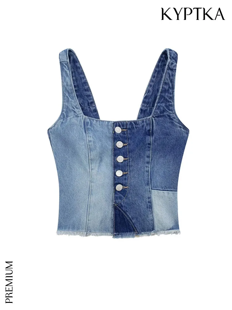 Модная женская джинсовая майка KYPTKA с передней пуговицей, Женская эластичная майка с широкими ремешками