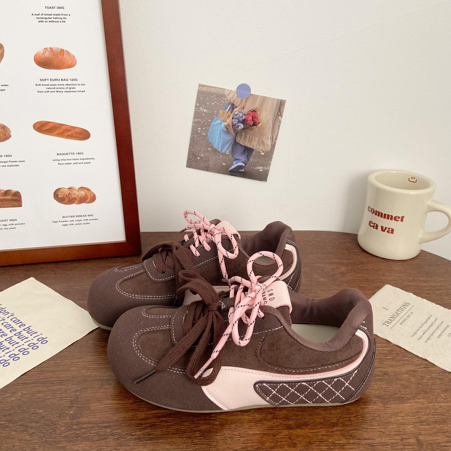 Модная женская обувь кроссовки 2025 весна осень противоскользящие балетки удобная уличная спортивная обувь балетный стиль на шнуровке трендовая обувь 38 коричневый