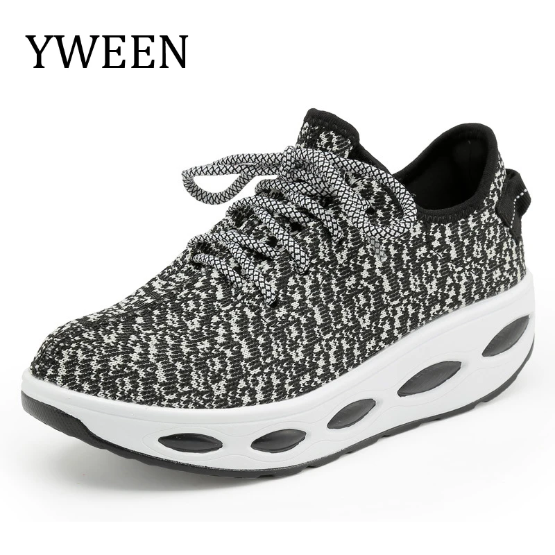 Модная женская обувь, женская сетчатая обувь на платформе, Женская дышащая сетчатая обувь на танкетке, дышащая женская обувь на плоской под...
