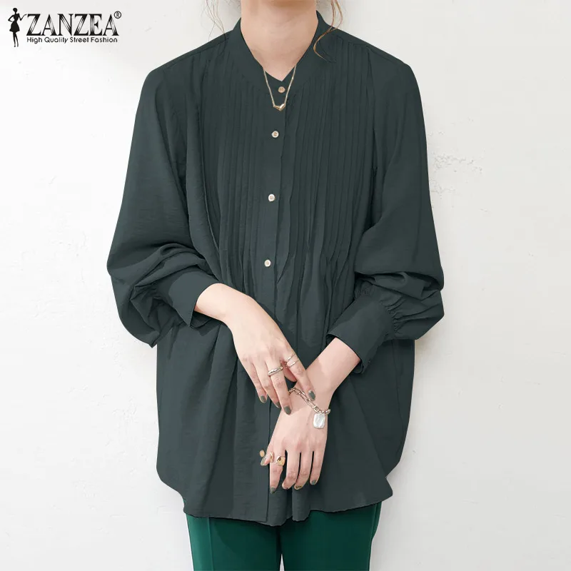 Модная женская плиссированная блузка с длинным рукавом ZANZEA, винтажная Весенняя Однотонная рубашка, повседневные рабочие офисные топы, женс...
